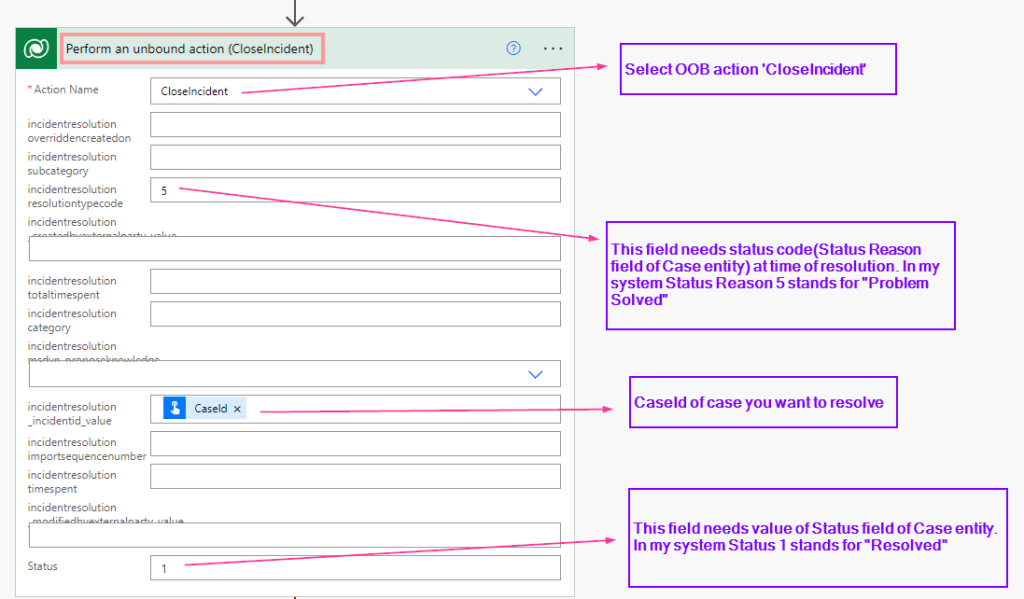 3. Just by calling an Unbound Action ‘CloseIncident’ in this manner will resolve your case.
